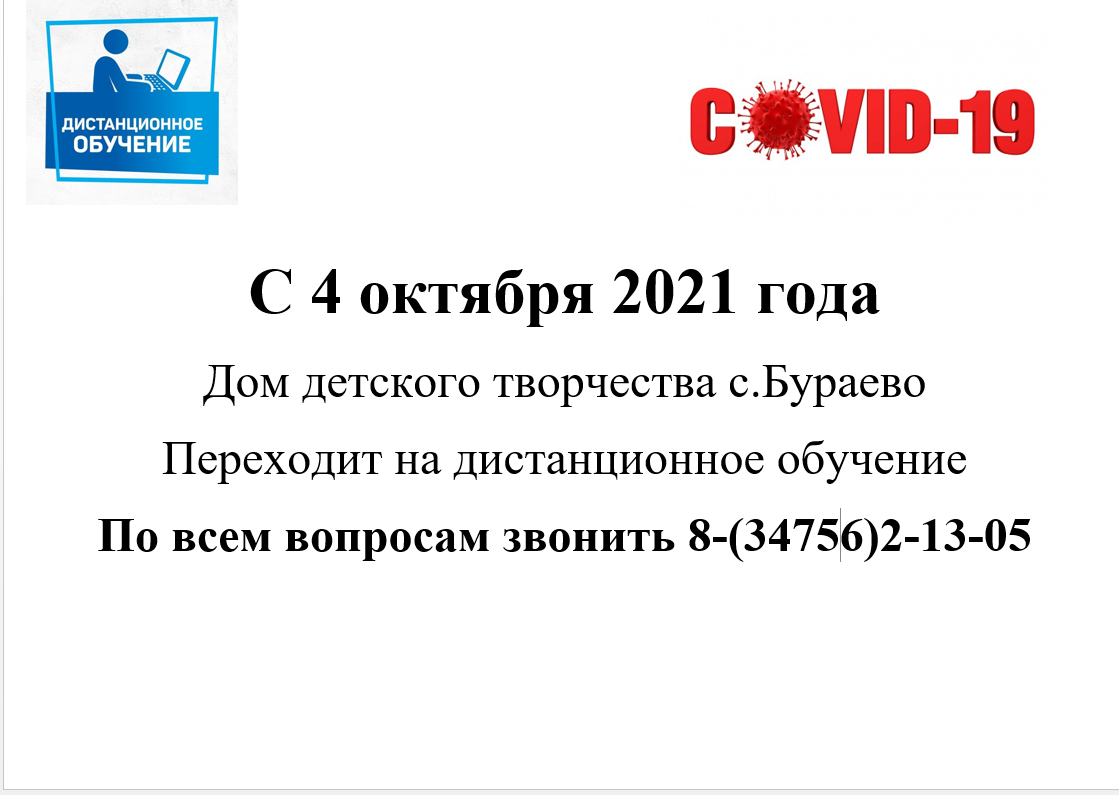 С 4 октября 2021 Дом детского творчества с.Бураево переходит на дистанционное обучение.