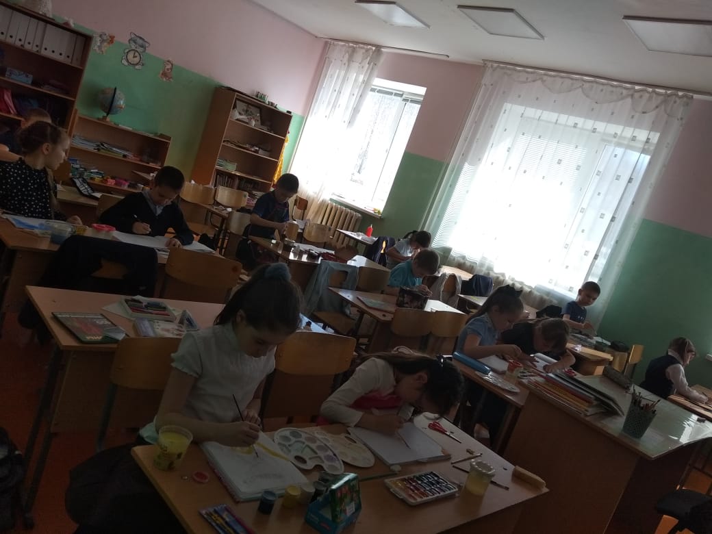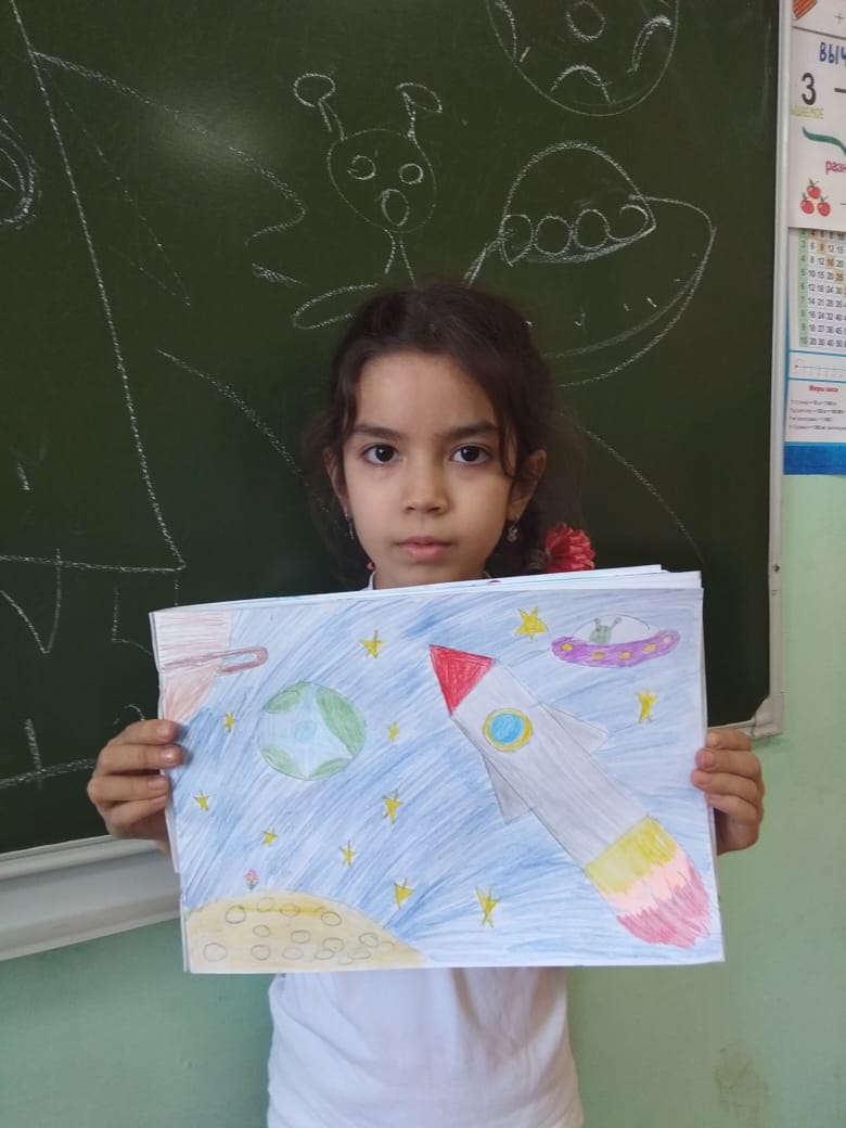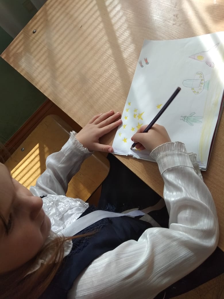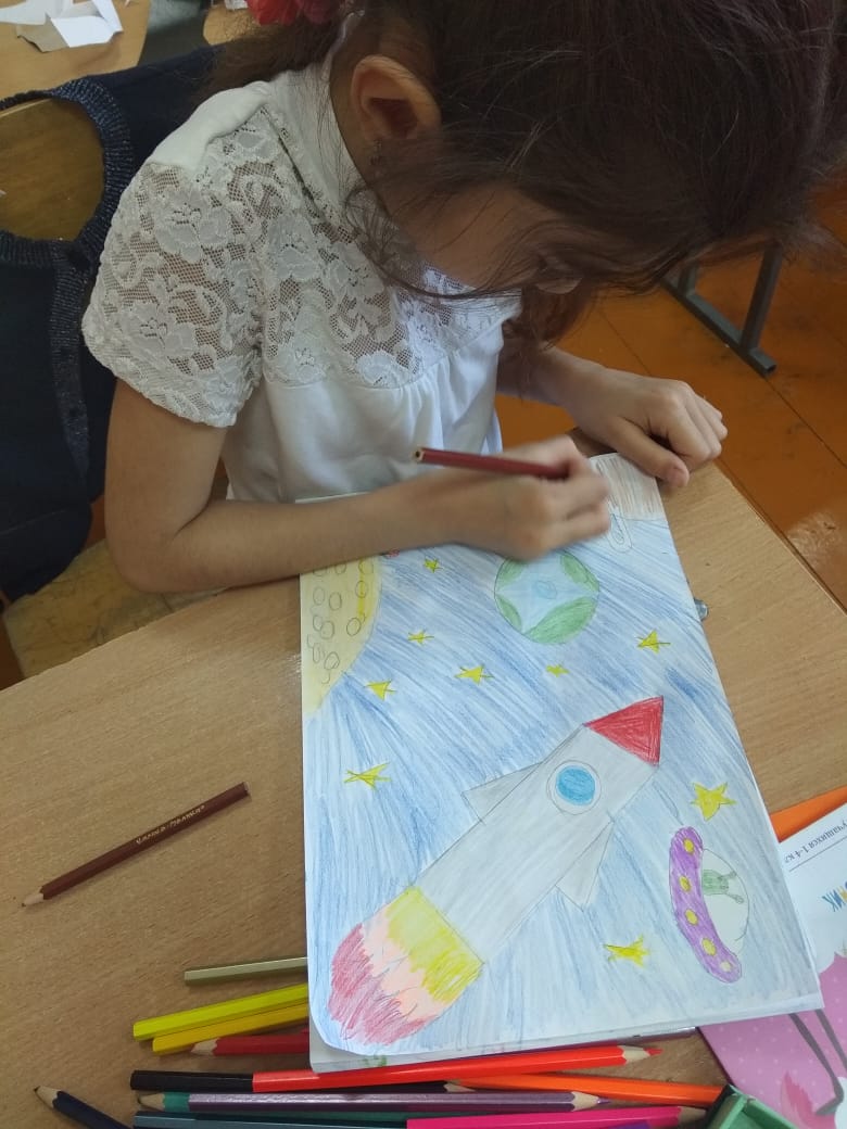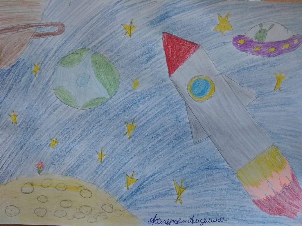 Воспитанники объединения "Палитра" под руководством Яппаровой Зили Радиловны провели урок "Мы рисуем космос",посвященный ко Дню космонавтики.